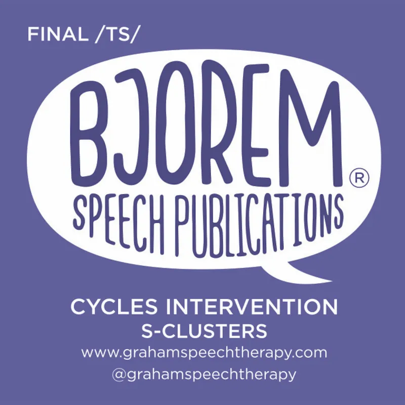 Bjorem speech publications presents Phonology Targets for Cycles Intervention by Amy Graham, M. A., CCC-SLP. This box includes targets for s-cluster reduction.